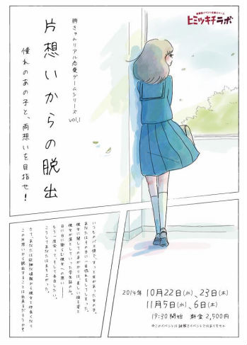 「胸きゅんリアル恋愛ゲームシリーズvol.1 片想いからの脱出」は、一目ぼれした相手ともう一度出会って仲良くなるというゲーム。プレイヤーは女学生に一目ぼれしたという設定で、彼女の後ろ姿と彼女が落とした学生証を手がかりに、「片想いからの脱出」を目指す。ゲームにはスマートフォンやPCを使用。自身のSNSアカウントが必要になることもあるという。