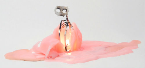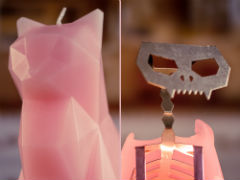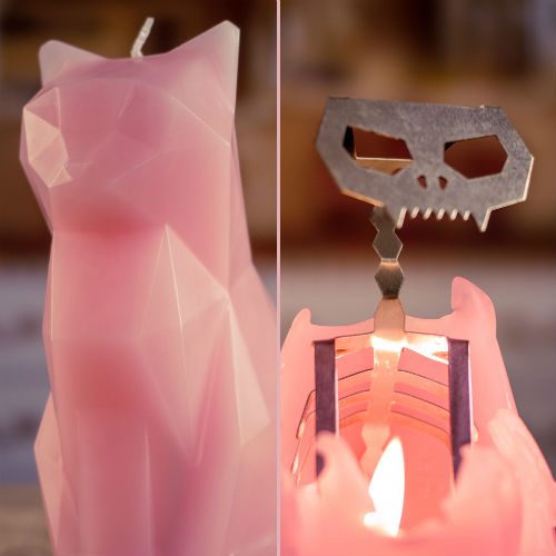 かわいらしいネコの形のキャンドル。火をつけるとロウが溶けて、中からなんとガイコツが! 「PYROPET CANDLE」はそんな一風変わったキャンドルです。