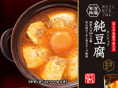 「豆腐百珍シリーズ」では江戸時代に話題となった豆腐料理を、豆腐ステーキやスンドゥブ鍋などとして楽しむことができます。メニューは「豆腐ステーキ(甘口醤油タレ)」「旨とろ豆腐で食べる 純豆腐」「旨とろ豆腐で食べる 豆乳鍋」「豆腐とあげで食べる とろける湯豆腐セット」の4種類。中でも豆腐とあげで食べる とろける湯豆腐セット」には「とろける湯豆腐の素」がついており、とろとろに溶けた湯豆腐が味わえるそうですよ。た、食べてみたい……!!