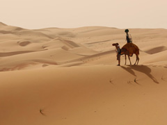 ラクダの影や、ラクダを引くおじさんの姿が味わい深い。