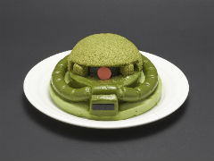 「MS-06 ザク」はアムロ・レイの操縦するモビルスーツに何度も立ち向かった究極のライバル機的存在。そんな「ザク」のヘッドをケーキで再現しました。甘さ控えめの生クリームを使用したちょっぴりほろ苦いコーヒームースを、厳選した抹茶を使用した和テイストのスポンジで包みました。モノアイはシュガークラフト(砂糖菓子)で再現。動力パイプには、白こしあん・上質のホワイトチョコレート・厳選した抹茶を使用し、新感覚の食感が楽しめるそうです。