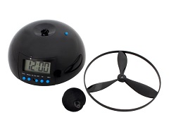 「フライングアラームクロック」は、設定時刻が来たら、けたたましいアラーム音が鳴ってプロペラがテイクオフ! 飛んでいったプロペラを元の場所に差し込まないとアラームが止まらない目覚まし時計です。プロペラはすぐ近くに落下しますが、取りに動くことで目が覚めるだろうという狙いです。