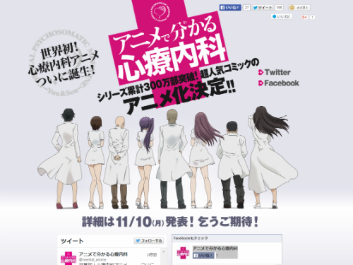 アニメ版はタイトルを「アニメで分かる心療内科」として放送する。詳細は11月10日に発表する予定。