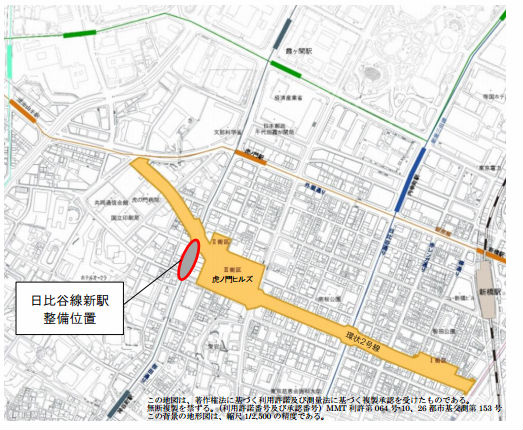 新駅は霞ケ関駅〜神谷町駅間、虎ノ門ヒルズ近くに設ける。2020年までに営業開始することを目指し、最終完成は2022年度を予定している。