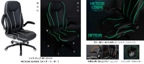蓄光剤を使用した暗闇で光るイス「ライトチェア BF-23-LU METEOR SEATER」をビーズが発売する。価格は2万8000円(税別)。