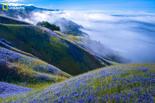 • Above Big Sur:米カリフォルニア州ビッグサーで撮影した一面のルピナス