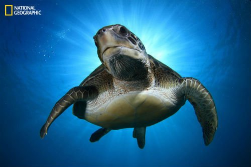 On the coast of Tenerife in the Canary Islands, we have quite the selection of affectionate green turtles (Chelonia mydas). I find myself devoting much time to these curious creatures. . This turtle was coming fron the surface with the sun behind it, and the sunrays surrounding it gave it a special majestry. Tenerife( Canary Islads) Spain Canon 7D, Canon 8-15mm, Subal Housing, 2x Subtronic strobes. F22, Iso 200, 1/160
