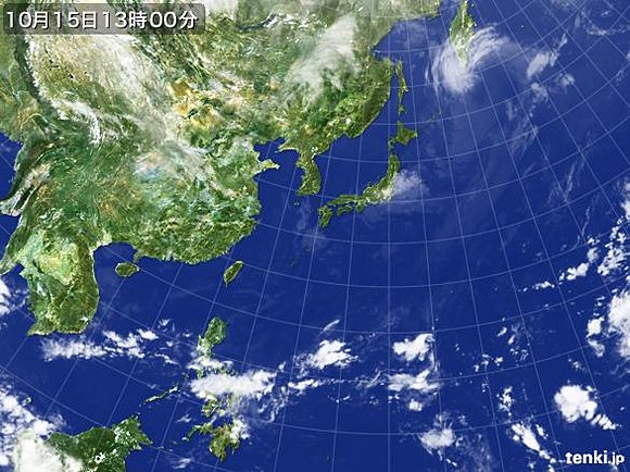 日本周辺の雲のようす(15日13時現在)