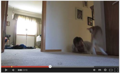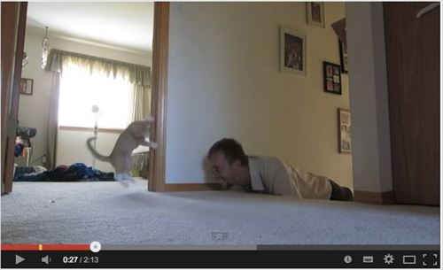 もしかして人間の方が猫に遊ばれているのかも? とも思えるほほえましい動画でした。