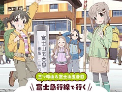 あわせて、キャラクターが訪れた富士急行線沿線のスポットをまとめた「舞台探訪マップ」を、富士急行線三つ峠駅・富士山駅・河口湖駅および三ツ峠グリーンセンター・富士急雲上閣で無料配布。マップは部数限定でなくなり次第終了となる。