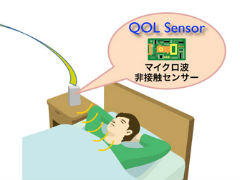 同社はアメリカの医療機器会社ResMedと提携し、睡眠状態を自動計測するデバイスとしてQOLセンサーを用意する。ベッドサイドや布団の横に置いておくことで測定が可能。マイクロ波の非接触センサーを搭載し、電波を使って身体の動き、呼吸、心拍などを、身体に触れずに計測できる。また疲労科学の分野の専門家と協力して、疲労状態を見える化する製品に取り組む。