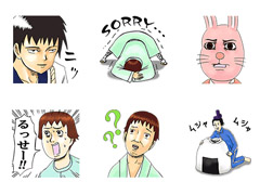 聖徳太子や松尾芭蕉、うさみちゃん、クマ吉くんなど原作の人気キャラクターがスタンプに。ぬいぐるみのマーフィーくんと眠る松尾芭蕉や、ソードマスターヤマトの「まそっぷ」、目が鋭くなっちゃったうさみちゃんなど、原作の名シーンもばっちり網羅しています。