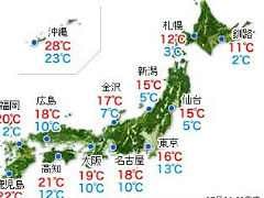 土日は曇りや雨の所が多く、関東以西でも日中の気温は20度に届かない所が多いでしょう。