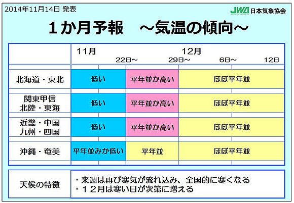 • 気温は北海道から九州にかけて平年並みか高く、一時的に寒くなっても、寒さが続くことはなさそうです。