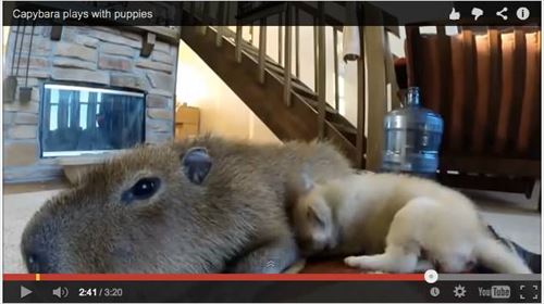 かわいい+かわいい=めちゃかわ! 子犬と遊ぶカピバラさんがキュート