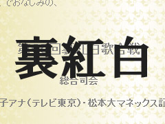 毎年恒例のネタ企画「裏紅白歌合戦」の出場メンバーが今年も発表されました。総合司会は大江真理子アナ(テレビ東京)と、松本大マネックス証券社長。司会は板東英二と矢口真里、白組・紅組のキャプテンは長嶋一茂&江角マキコと相変わらずギリギリの内容となっています。……いい加減怒られるぞ!