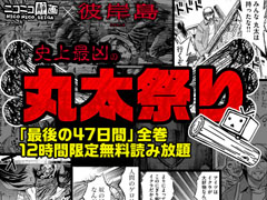 「ニコニコ静画×彼岸島 史上最凶の丸太祭り」と題されたキャンペーン。「彼岸島 最後の47日間」は人間と吸血鬼の47日間の戦いを描いた彼岸島シリーズの第2部にあたる作品で、フルアーマー丸太の登場などマルティスト(彼岸島ファン)の間で伝説となっている「第115話 丸太」が収録されているのも同シリーズ。12月4日正午から5日午前0時までの12時間限定で、全16巻がニコニコ静画で無料読み放題になります。
