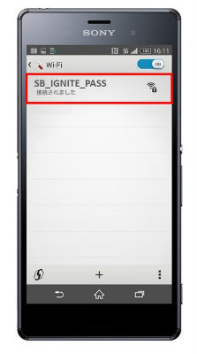 Wi-FiアクセスポイントのSSIDが「SB_IGNITE_PASS」(イグナイトパス)になる。