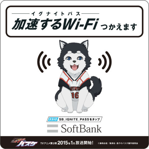 黒子のバスケのラッピング移動基地局車が登場するほか、会期中に会場で利用できるWi-Fiの電波名称を、主人公・黒子テツヤの必殺技「イグナイトパス」に、SSIDを「SB_IGNITE_PASS」に変更する。作中に登場する「テツヤ2号」を看板犬とするコミケオリジナルのビジュアルも作成し、Wi-Fiアクセスポイントを装備した「Wi-Fi忍者」のアイコンに使用する。