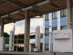 列車の発着に応じて3本のバーが昇降する柵を、上りホームに編成両数分(4両編成)を整備する。