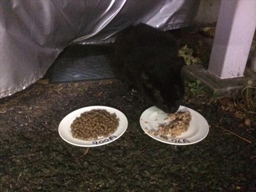 このままだと全部食っちゃいそうだったので、もう1匹のねこにも差し出してみます。