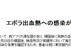 厚生労働省は12月29日、都内において、エボラ出血熱への感染があり得る患者が発生したと発表した