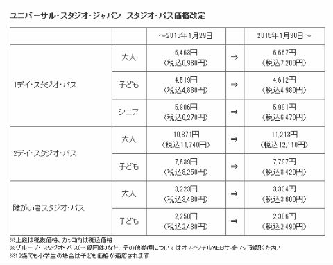 ユニバーサル・スタジオ・ジャパン(USJ)は1月30日からスタジオ・パス(入場券)を値上げする。