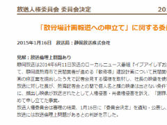 放送倫理・番組向上機構(BPO)は1月16日、静岡放送(SBS)のローカルニュース番組に関して「約束に反して顔出しで放送された」との申し立てがあった件について、「放送倫理上問題あり」との見解を示した。