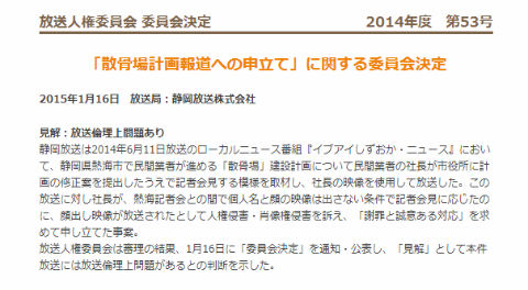 BPO、静岡放送の「約束に反して顔出し放送」に「放送倫理上問題あり」の見解