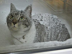 体に雪が積もっても、怒りにくるボス猫。でも、かわいいなあ(画像提供:MACLORDさん