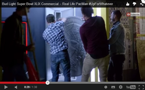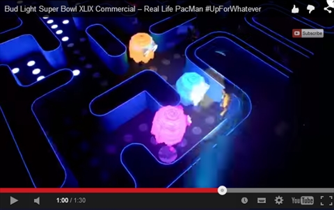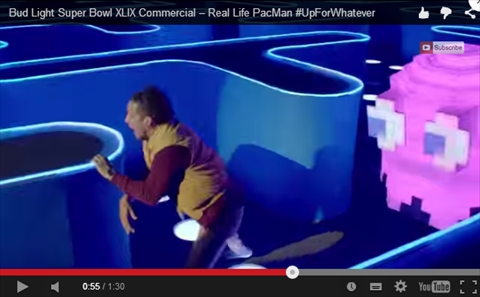 Budweiserが、2月に開催されるスーパーボウル(プロアメリカンフットボールリーグNFLの優勝決定戦)のCMのために巨大な「パックマン」のセットを作ったことが話題になっていました(関連記事)が、そのCMがWebで公開されました。