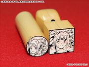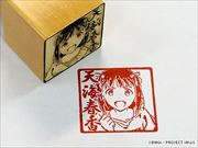 765プロダクション所属のアイドルのイラストを刻印。天海春香、星井美希など全部で26種類をそろえた。好きな文字を彫刻でき、実名入りなら銀行印としても使用できる。価格は丸印が3580円、角印が3980円、高級レザー捺印マットが1980円(いずれも税別)。丸印と角印を同時に購入すると「痛印オリジナル収納ケース」がもらえる。
