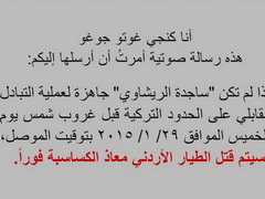リシャウィ死刑囚をトルコ国境まで連れて来て解放しなければ、拘束されているヨルダン軍パイロットを処刑するとのメッセージ。