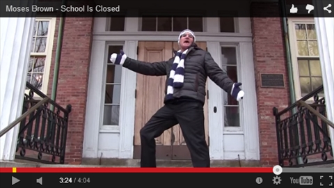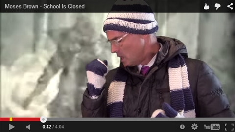 動画に登場するのはMoses Brown Schoolの校長先生。「休校〜休校〜雪がすごいから〜」「休校〜休校〜ベッドで寝てていいよ〜」と「Let It Go」の替え歌に乗せて、エルサのような動作をしながらノリノリで(口パクで)歌っています。歌を担当したのは舞台芸術科の先生だそうで、とてもいい声です。