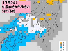 17日午前6時から9時の関東の天気分布(16日11時発表)