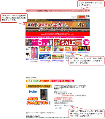 楽天が、「楽天」「楽天市場のショップ」に偽装したサイトが存在しているとして、注意を促しています。