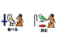 ヒエログリフが読めない人には、ひよこや蛇、グニャグニャした線などの図形の集まりにしか見えません。しかし、下に日本語が併記されているので大丈夫。ちゃんと読めます。日本語でOKとか言うのはやめてください! ヒエログリフを使うことにロマンがあるんです!