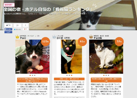会いに行きたいにゃんこ 楽天トラベルが宿の「看板猫」人気投票
