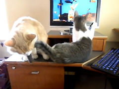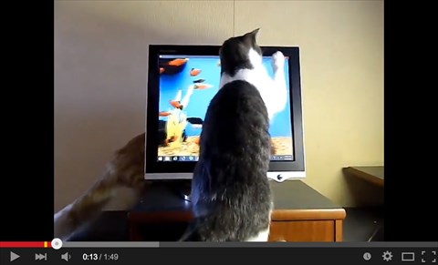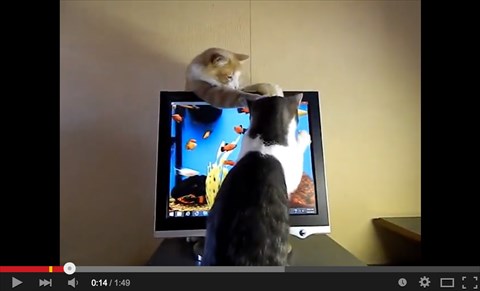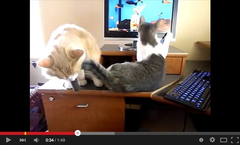 PCモニターに表示された映像に夢中になっている猫と、必死に注意を引こうとする猫による、仲むつまじい(?)キャットファイトを撮影したアニマルビデオがYouTubeで公開されています。