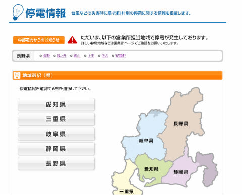 中部電力は停電の復旧を報告。原因は調査中としている。