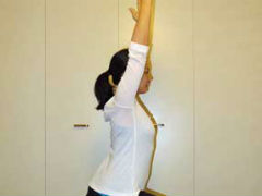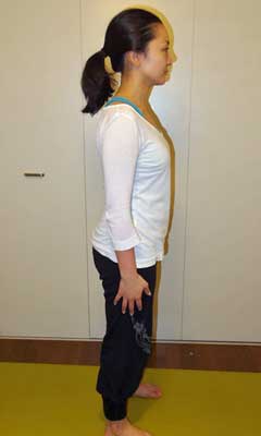 背筋を伸ばし、手の指先を伸ばし、膝のお皿を上げるようなイメージで