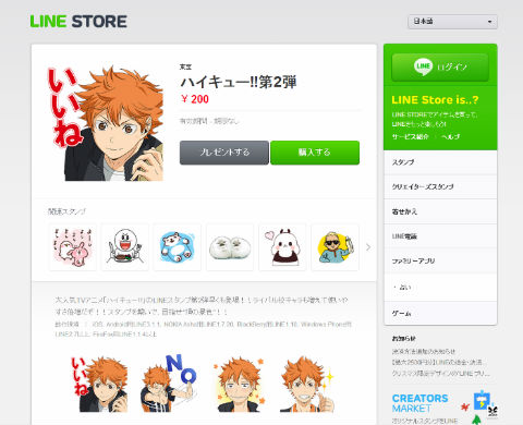 烏野排球部のメンバーのほか、音駒や青葉城西、伊達工業といったライバル校のキャラクターも増えています。LINEストアから200円で購入可能です。