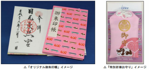 東武鉄道の一部駅などで販売する「オリジナル御朱印帳」(税込1000円)を購入し、浅草神社、上野東照宮、日光東照宮で御朱印を集めると、3神社いずれかで祈祷(きとう)した「特別祈祷お守り」がもらえます。オリジナル御朱印帳は特急スペーシア、日光東照宮の眠り猫や三猿をデザインしたもの。2000個限定での販売となります。