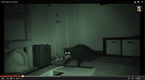 暗いところでも目が見える猫ちゃん。また、夜行性でもあるため人間が眠っている間も行動しています。夜中の猫ちゃんたちは一体何をしているのでしょうか? カメラを仕掛けて夜中の猫ちゃんたちの様子を撮影した動画が公開されています。
