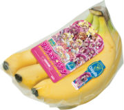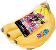 左からチキータ「プリキュア」バナナ、チキータプレシャス「プリキュア・ドルチェ」バナナ、チキータ「プリキュア・プチ」バナナ