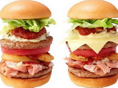 「東京タワーバーガー」は2枚のパティの間にパストラミベーコンやオニオンフライ、トマトやレタスなどの生野菜をそれぞれ重ね、ホットチリソースをかけたピリッとした辛さが特徴のハンバーガー。全部で14層を重ねている。「東京タワーチーズバーガー」は「東京タワーバーガー」にスライスチーズを2枚加えてマイルドな味わいをプラス。全部で15層となる。