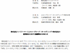 ファミリーマートとユニーグループ・ホールディングス(HD)は3月10日、経営統合に向けた協議の開始を決定し、覚書を締結したと発表した。