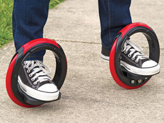 直径25センチ程度のリング状のボディが2つで1セットとなっている同商品は、ボディ内にホイールを内蔵しています。リングの内側のステップに足を入れ、くねくねと蛇行運動をすることで前に進めますよ。