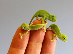 生まれたばかりの赤ちゃんカメレオンが指先でわちゃわちゃしてる姿がかわいすぎる!