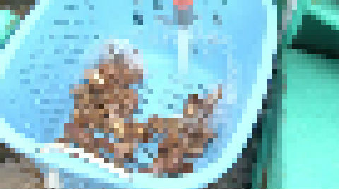 水揚げされたオオグソクムシ。クリックでモザイクが外れます(「オオグソクムシは焼いて食う! ニコ生で「深海生物ハンターと行く、深海漁見学ツアー」2日連続放送」より)